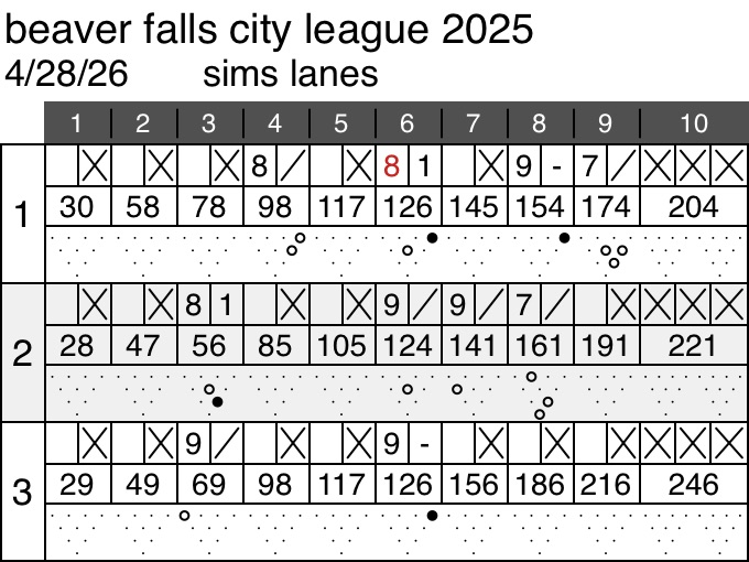 Well tonight was our end of season league tournament. We bowled 3 3rds and finished them in 2nd, 8th, and 3rd. Pretty good for a team with only 2 bowlers with extensive experience.
