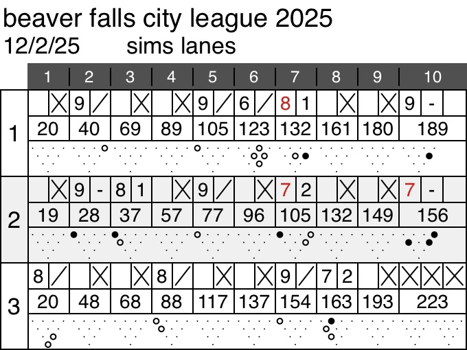 Game 3: 223 (8 strikes, 3 spares, 1 open)