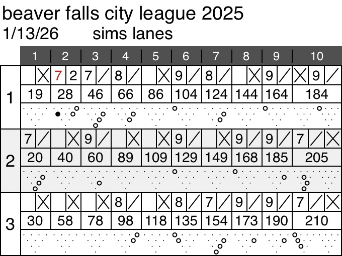 The team we bowled was 1 spot ahead of us but they bowled pretty good tonight, especially game 3. I think they were about 150 over their average. They had a 1044 scratch with an 890 average. We lost 2 of 3 but deserved it for the way we bowled.
