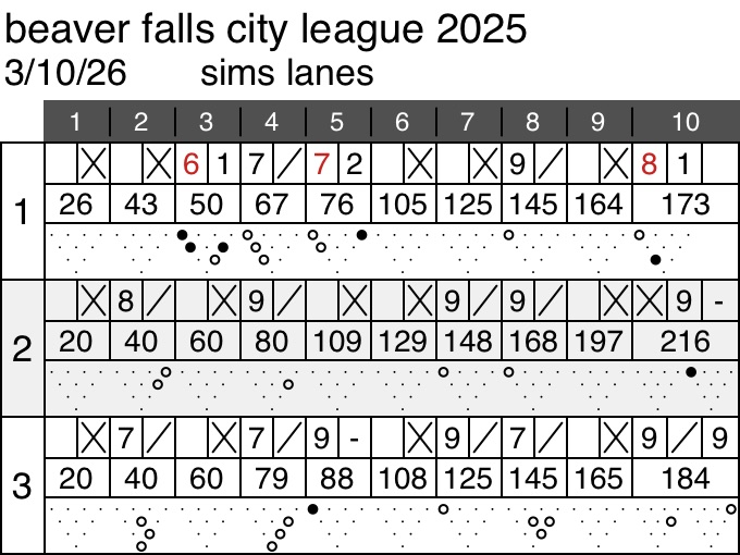 We won 2 of 3 games. One guy on the other team has a 244 average. He rolled 716. About 30 below his average. The one lefty has a 228 average and rolled 565. Righties struggled too.
