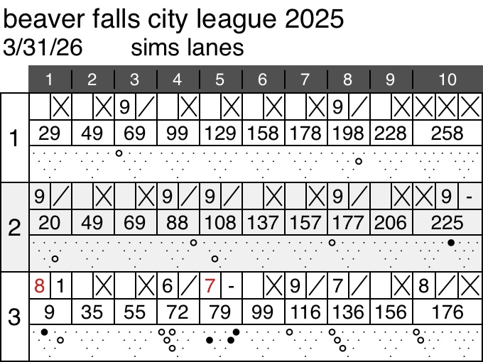 Update on the tournament. After 3 weeks I'm 12th of 183 in handicap singles and 15th of 183 in scratch singles. In doubles we are 125th of 149 in scratch and 105th of 149 in handicap. My son is pretty low in scratch singles and 25th in handicap singles. 1 in 5 get paid so looking good so far.